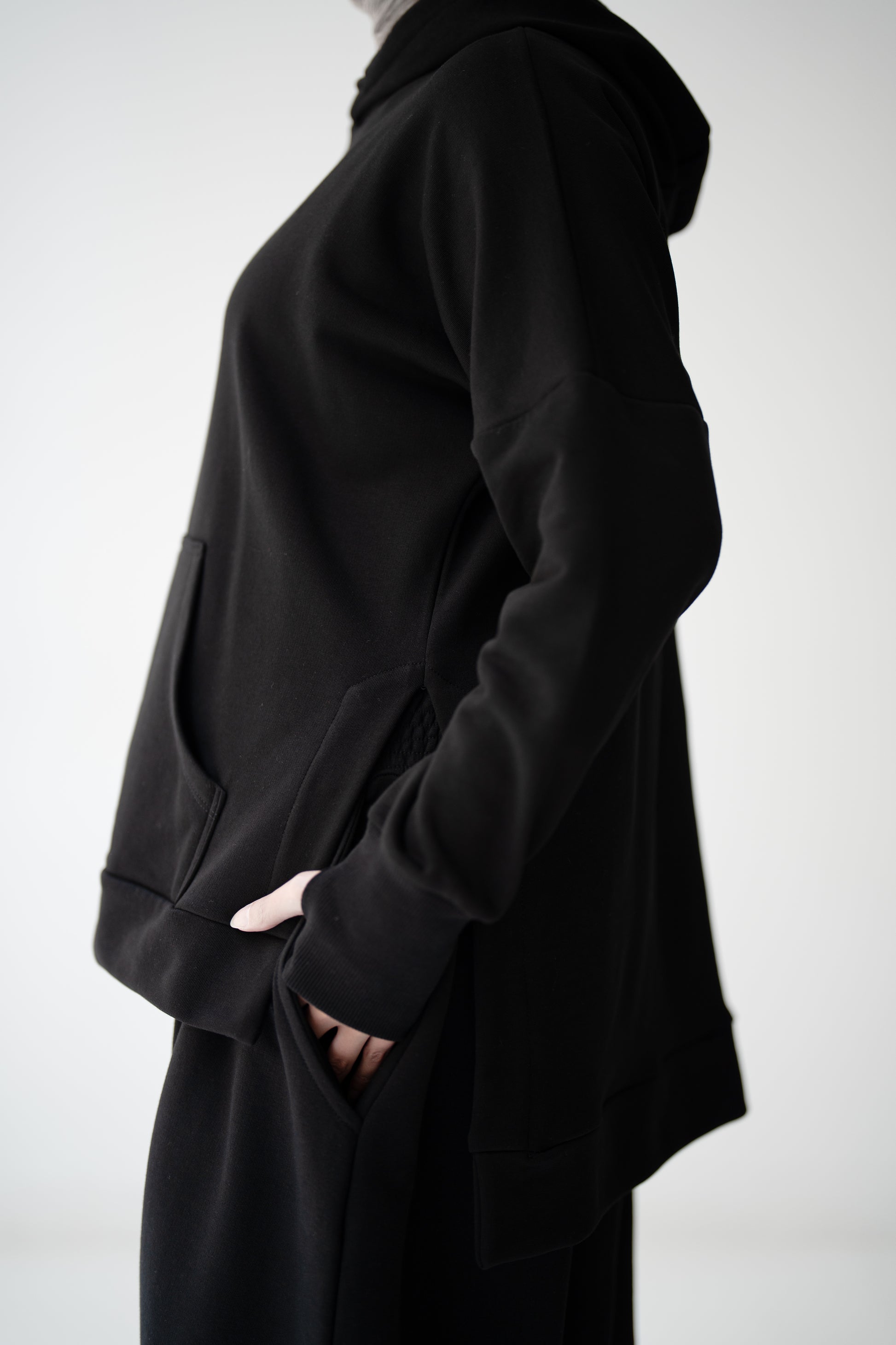 - Hooded sweatshirt with side slits