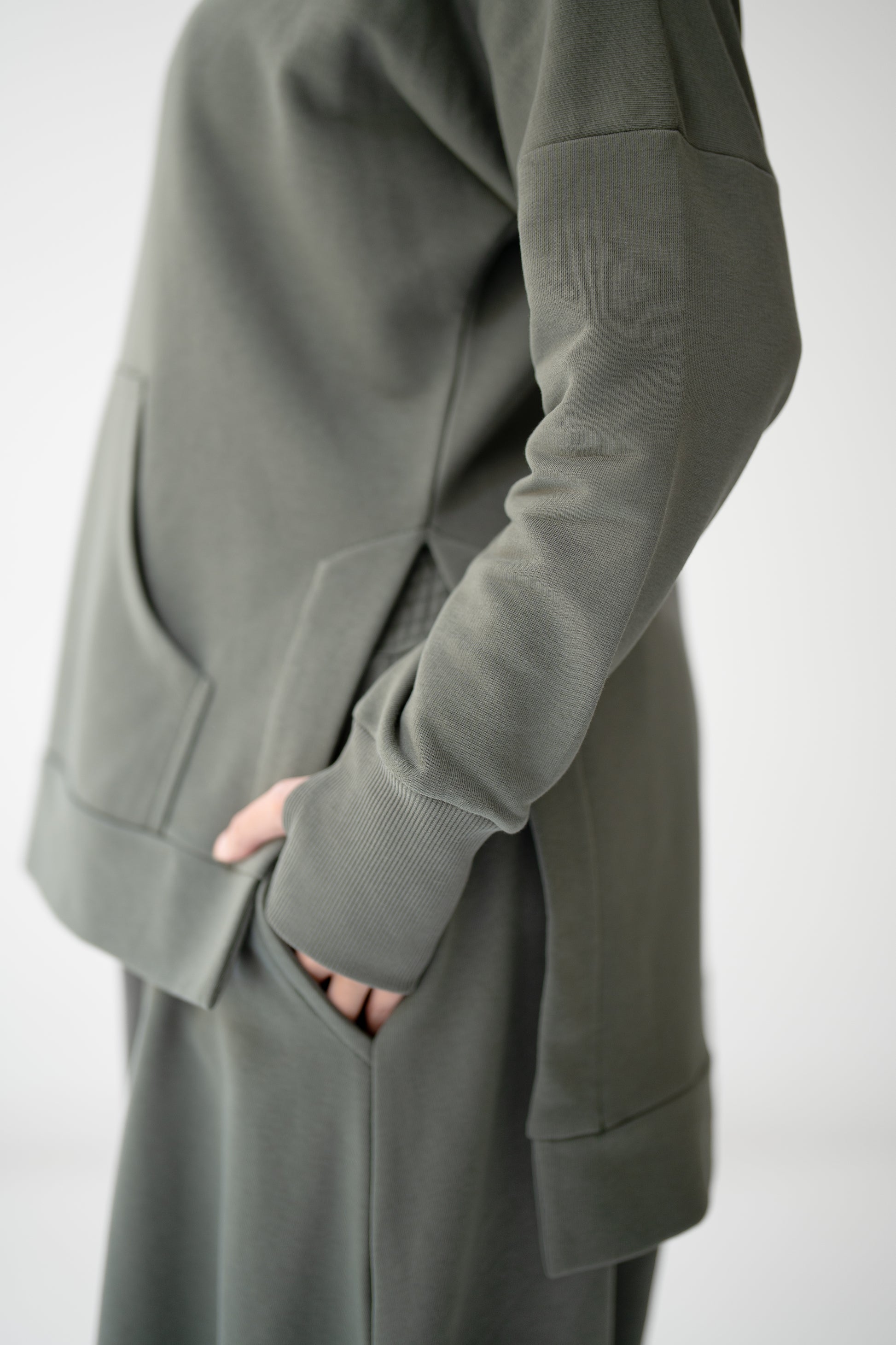 - Hooded sweatshirt with side slits
