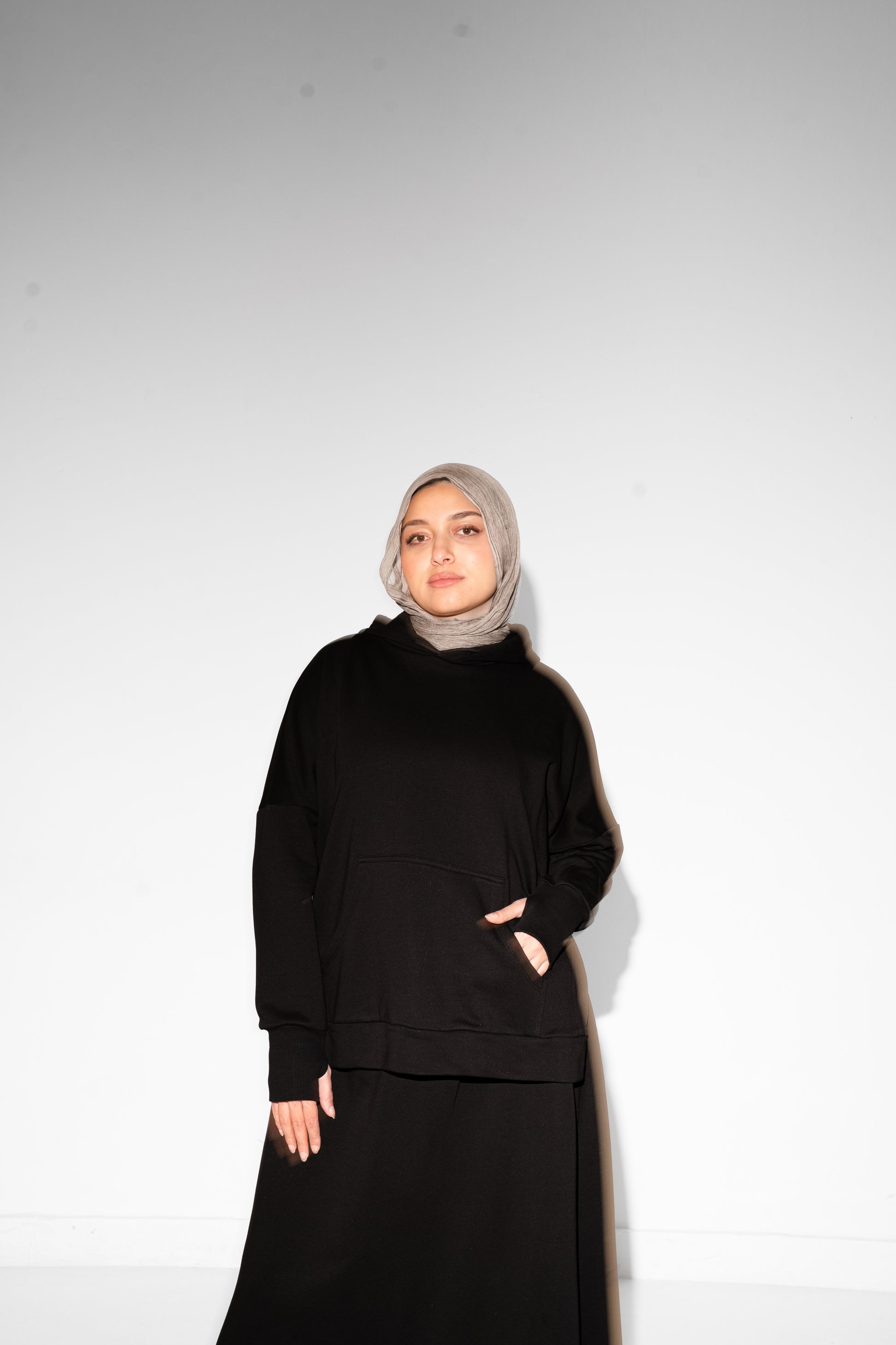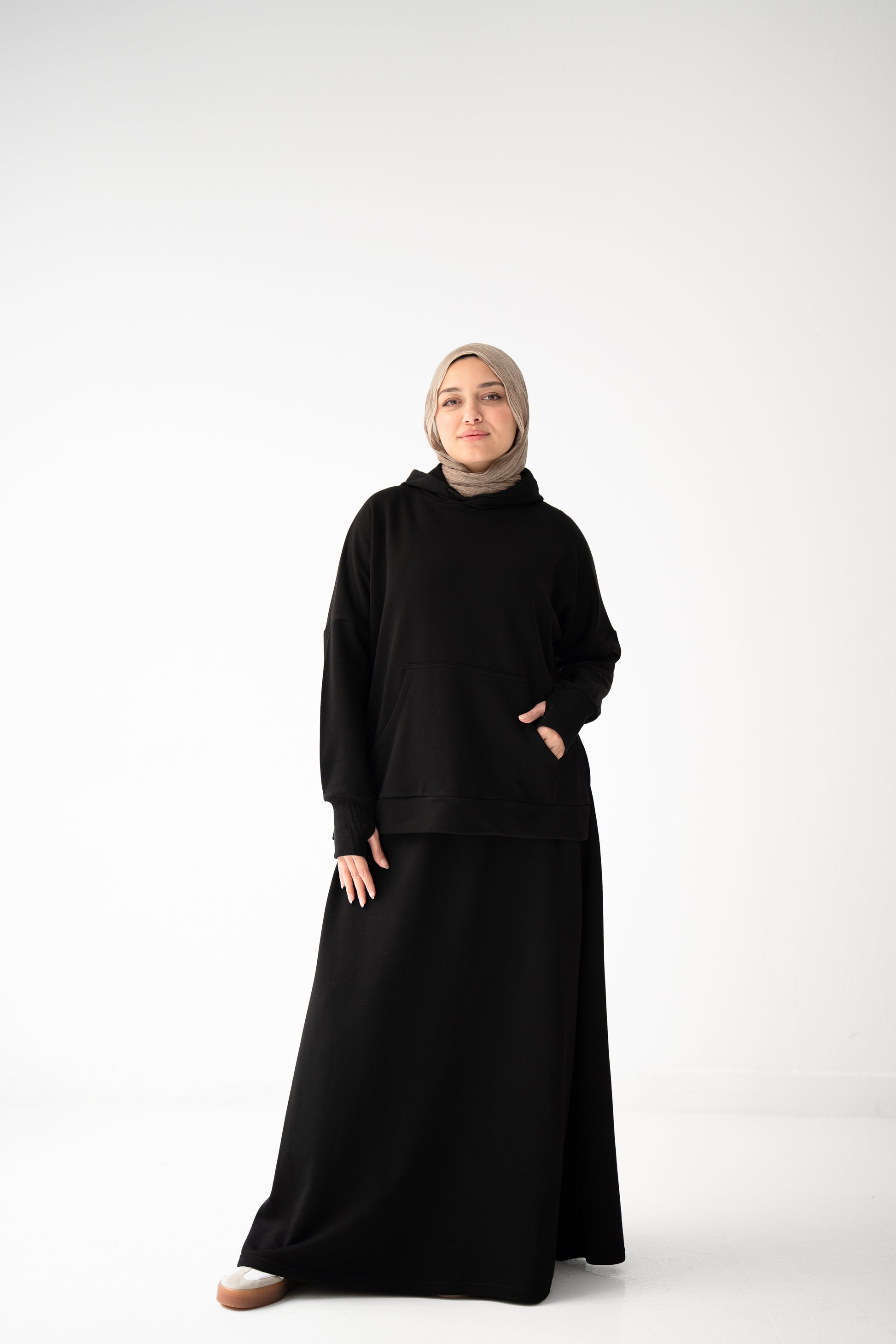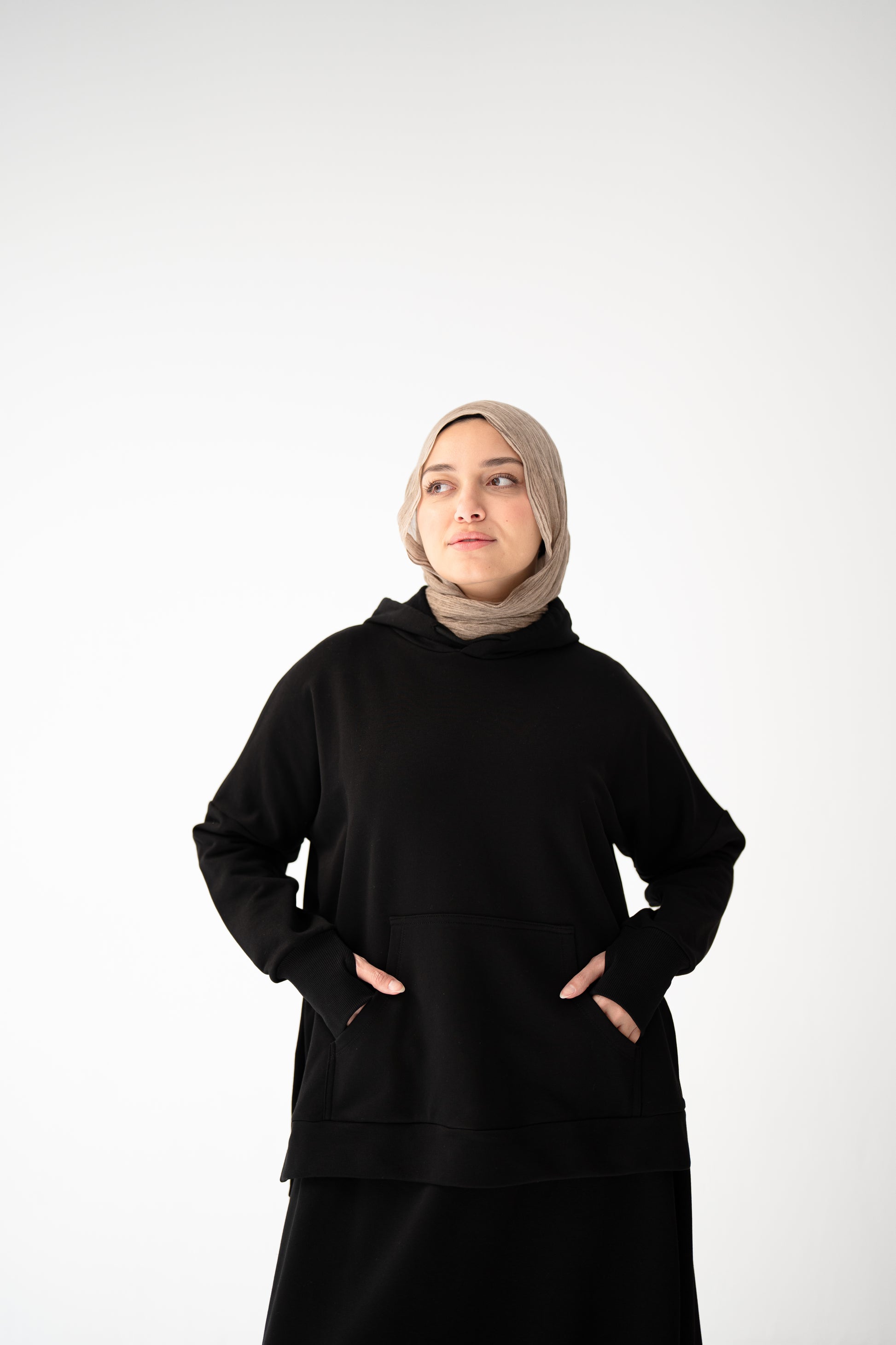- Hooded sweatshirt with side slits