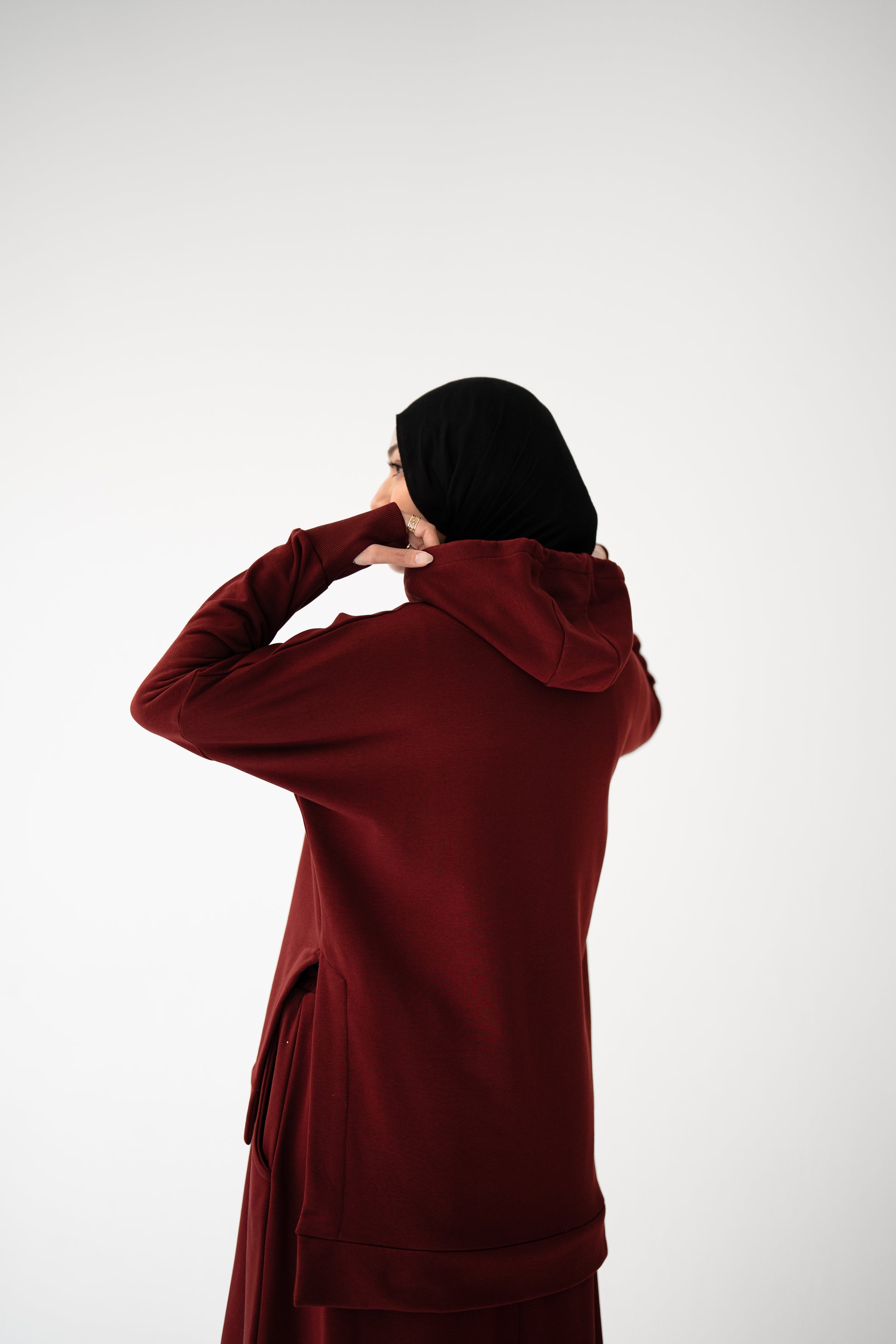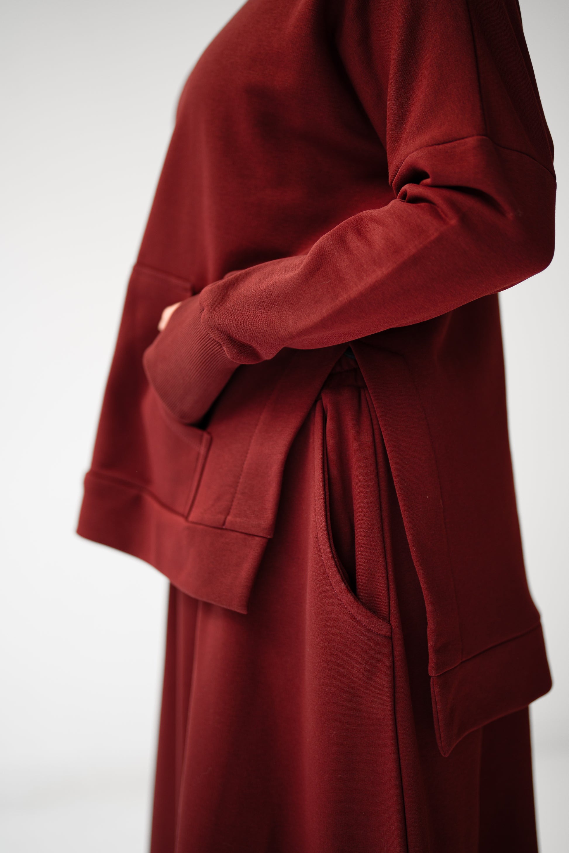 - Hooded sweatshirt with side slits